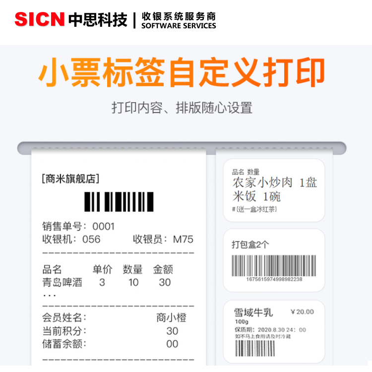 首先,支持基本的前臺小票打印,商品掃碼功能,便于收銀員快速操作,避免高峰期排隊浪費不必要的時間;