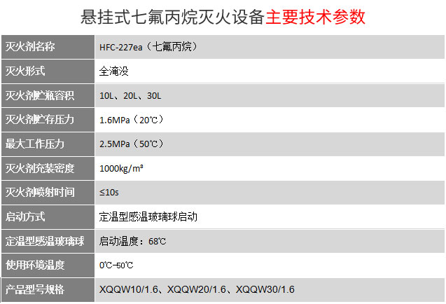 產(chǎn)品參數(shù) 產(chǎn)品名稱:七氟丙烷滅火器 懸掛式氣體滅火系統(tǒng) 七氟丙烷自動(dòng)滅火器 10L/20L/30L溫感型懸掛式七氟丙烷氣體滅火設(shè)備119元抵扣券