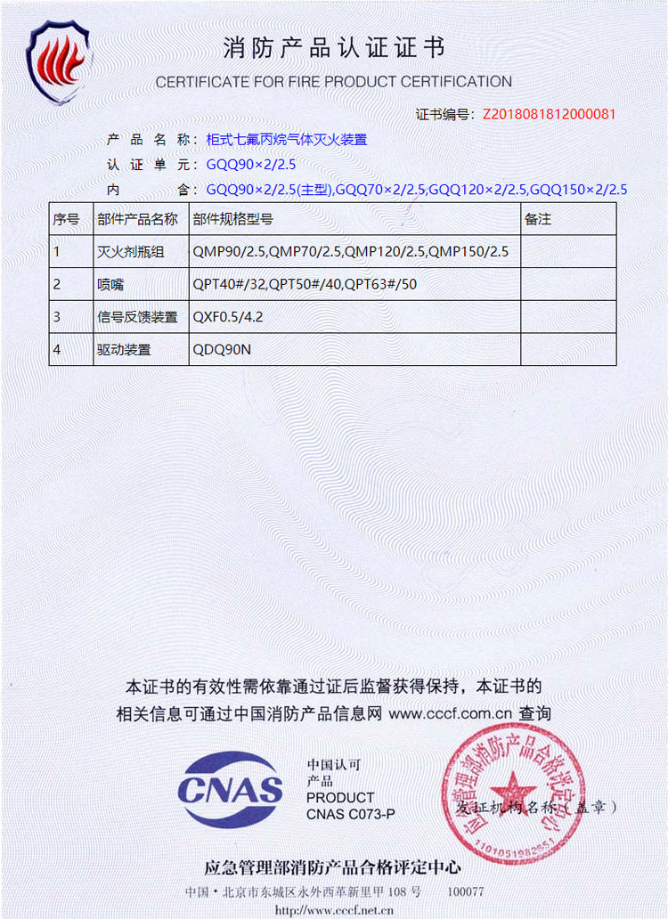 柜式七氟丙烷氣體滅火裝置包括:滅火劑瓶組、高壓軟管、電磁型驅(qū)動(dòng)裝置、信號(hào)反饋裝置、噴嘴、柜體、七氟丙烷滅火劑組成。