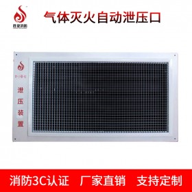 本公司生產(chǎn)的機械型泄壓裝置也稱自動泄壓口,安裝在滅火防護區(qū)墻體上,平時呈關(guān)閉狀態(tài),當(dāng)氣體滅火系統(tǒng)對防護區(qū)實施滅火時,泄壓裝置在一定壓力下自動打開泄壓,確保防護區(qū)安全;當(dāng)壓力降低到一定值時,泄壓裝置自動關(guān)閉。