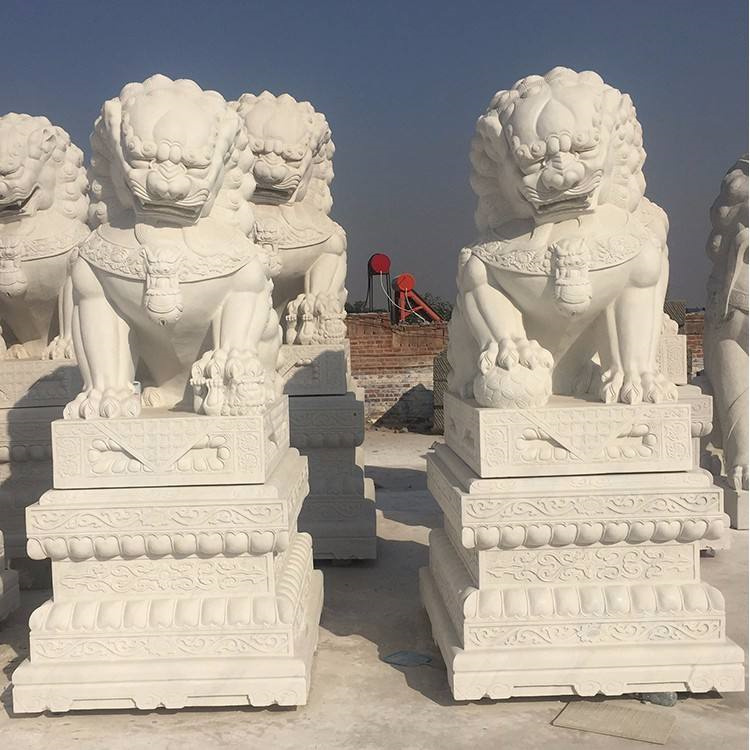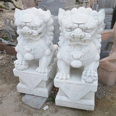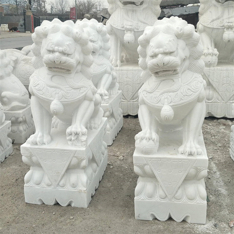 漢白玉獅子定制 小區(qū)別墅酒店擺放 公園景觀大型石雕動物擺件