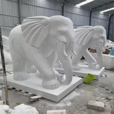 漢白玉大象 別墅庭院門口鎮(zhèn)宅招財(cái)動物雕塑擺件