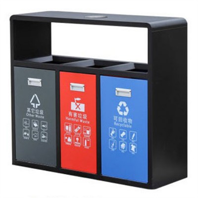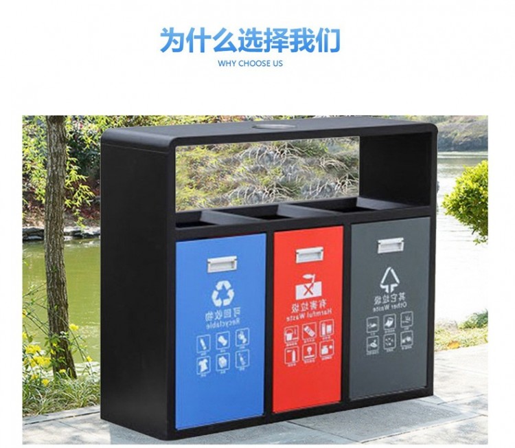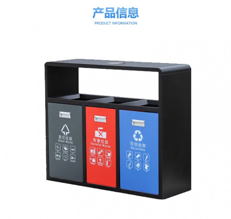 產(chǎn)品名稱:戶外環(huán)衛(wèi)分類垃圾桶 多分類垃圾箱 鍍鋅板三分類垃圾箱四川成都廠家