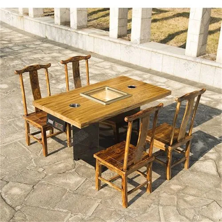 火鍋?zhàn)?無煙燒烤桌餐桌椅組合 新中式實(shí)木無煙電磁爐火鍋?zhàn)?/p>