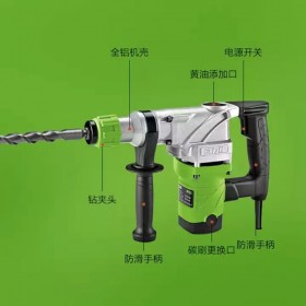 滑動式夾桿設計,鎖定更牢固,裝卸鎬桿更快捷。軟橡膠包裹的副手柄有效降低振動,配合360°旋轉功能,使操作更方便、更舒適。優(yōu)化機械結構設計,提供超乎尋常的沖擊力和耐用性。高品質電機,瞬間爆發(fā)澎湃動力,工作效率更高。獨有的減震彈簧板,大幅削減后傳震動,減輕操作者疲勞度。開關鎖定功能,適用于長時間工作。