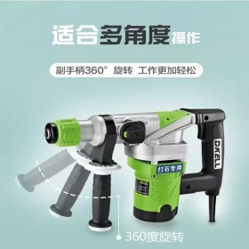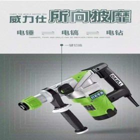 電錘是附有氣動(dòng)錘擊機(jī)構(gòu)的一種帶安全離合器的電動(dòng)式旋轉(zhuǎn)錘鉆。電錘是利用活塞運(yùn)動(dòng)的原理,壓縮氣體沖擊鉆頭,不需要手使多大的力氣,可以在混凝土、磚、石頭等硬性材料上開6--100mm的孔,優(yōu)點(diǎn)是效率高,孔徑大,鉆進(jìn)深度長