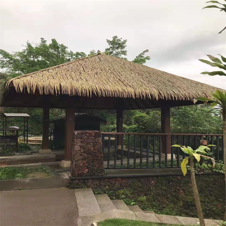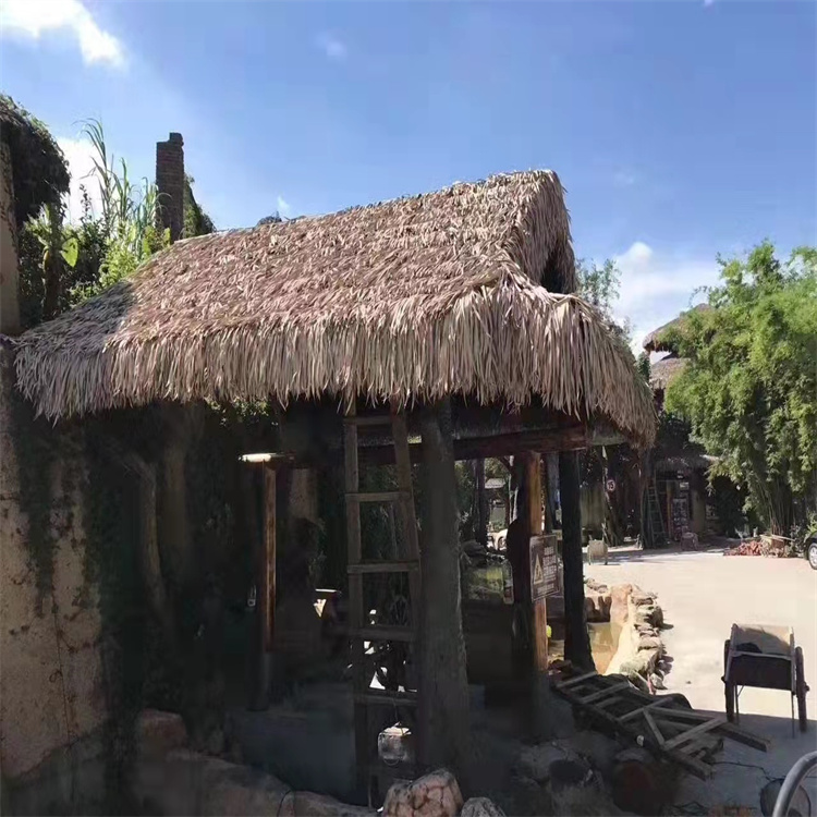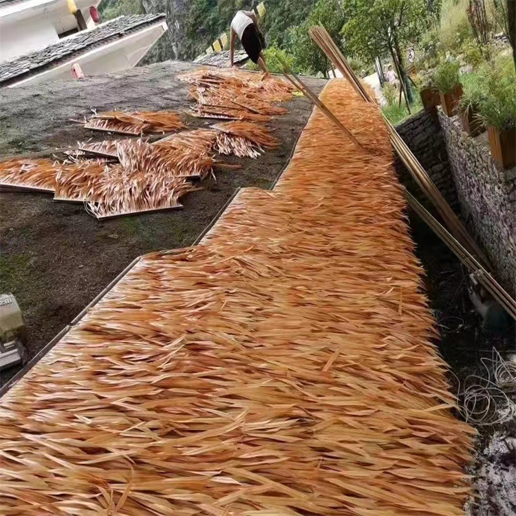 高分子茅草瓦是選取真實茅草常規(guī)常見的斑點腐爛色作為產(chǎn)品特色,仿茅草外形進行加工生產(chǎn),采用進口高級環(huán)保合成高分子原料及世界先進的高仿技術(shù)生產(chǎn)工藝,是市面上普通塑料茅草的升級產(chǎn)品,具有阻燃防火、抗變形、抗老化、抗臺風、不發(fā)霉、不腐爛、不退色、不生蟲等特性。