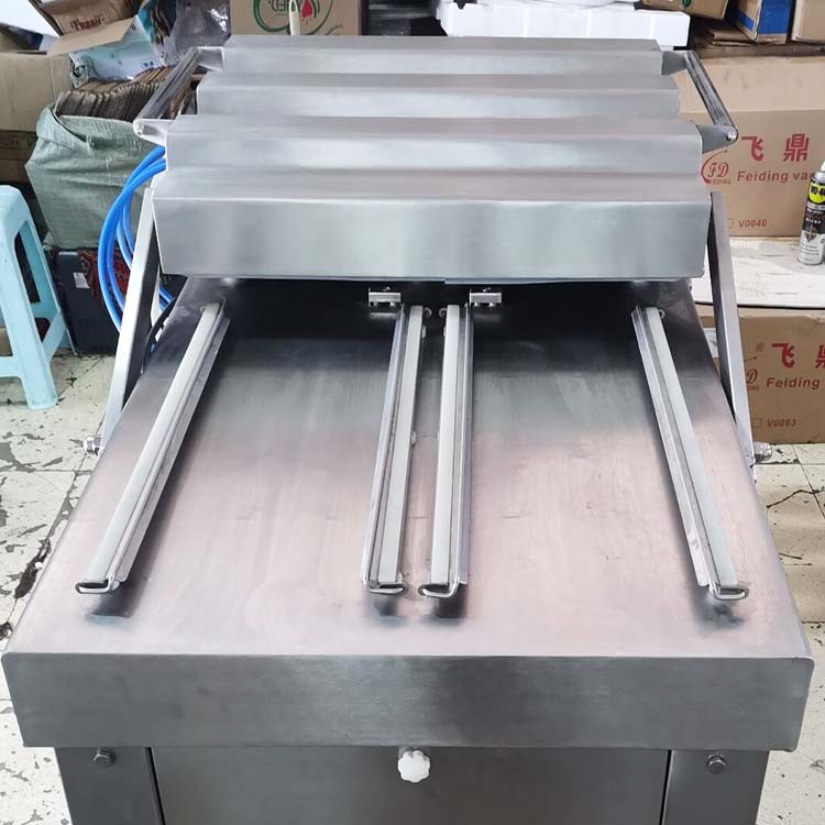 一個(gè)真空室四個(gè)封條同時(shí)工作,一臺(tái)機(jī)器相當(dāng)于二臺(tái)二封口機(jī)器同時(shí)工作的量。