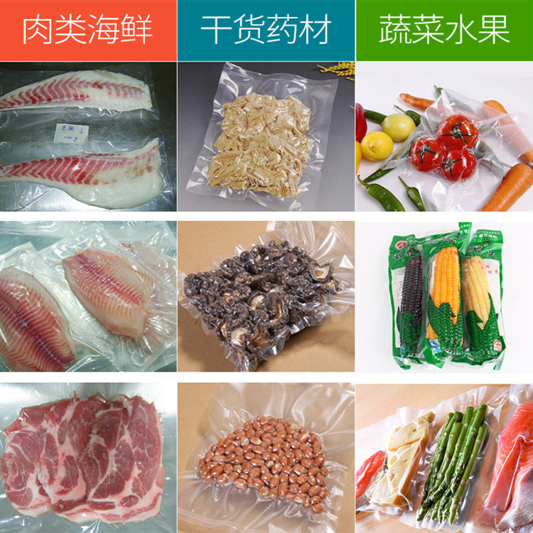 適用范圍:適合袋型較大的物品包裝(粽子、蔬菜、胡蘿卜、核桃仁、牛肉、年糕、黃粑、蝦米、蝦仁、纏絲兔、板鴨、香腸、臘肉、大袋醬菜、山珍海味、電子元件等)