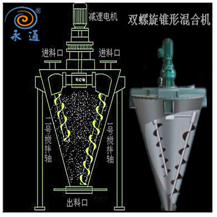 錐形混合機又叫錐形螺帶混合機可分為單螺帶和雙螺帶錐形混合機,廣泛應(yīng)用于化工、化肥、油田、煉油、農(nóng)藥、獸藥、涂料、顏料、染料及助劑、冶金、冶煉、耐材、礦山、建材、電子塑料、飼料、等行業(yè)即粉體等物料混合攪拌。