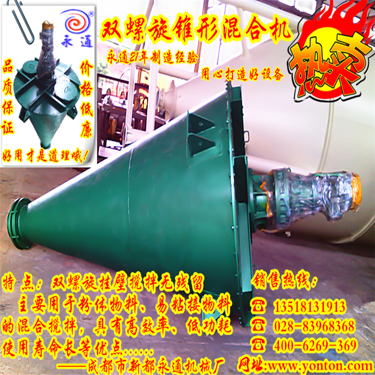 錐型螺帶混合機應(yīng)用局限性:混合粘性或具有凝聚性的物料時,清洗困難錐形混合機在特殊干粉砂漿生產(chǎn)時做為干粉砂漿設(shè)備中的主要部分發(fā)揮攪拌作用