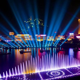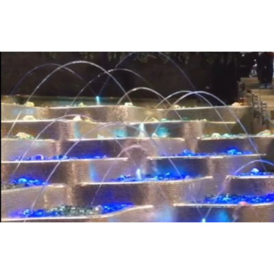 二是完全依靠噴泉設(shè)備人 工造景。這類水景近年來在建筑領(lǐng)域廣泛應(yīng)用,發(fā)展速度很快,種類繁多,有波光噴泉、音樂噴泉、程控噴泉、擺動噴泉、跑動噴泉、光亮噴泉、游樂趣味噴泉、超高噴泉、激光水幕電影等。