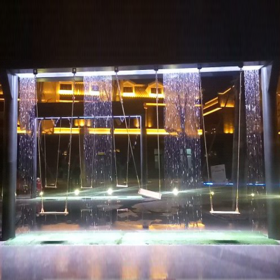 水簾噴泉是水體沿著特殊的線流動,由于水孔較細(xì)小、單薄,流下時仿若水的簾幕,構(gòu)成了無聲的閃爍水幕,而流水不會噴灑到四周,并使空氣變濕潤。