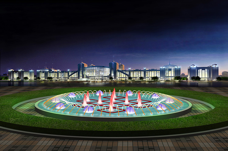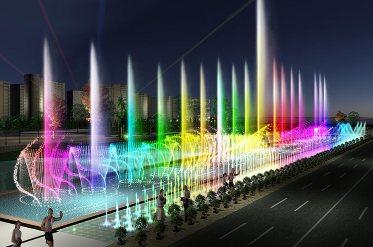 二是完全依靠噴泉設(shè)備人 工造景。這類水景近年來在建筑領(lǐng)域廣泛應(yīng)用,發(fā)展速度很快,種類繁多,有波光噴泉、音樂噴泉、程控噴泉、擺動噴泉、跑動噴泉、光亮噴泉、游樂趣味噴泉、超高噴泉、激光水幕電影等。