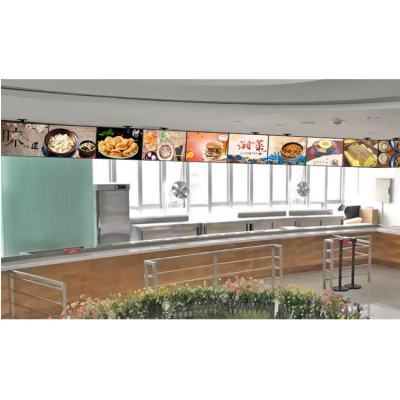 可以實(shí)現(xiàn)隨意拼接,既能播放聯(lián)屏內(nèi)容,還能單獨(dú)播放單屏內(nèi)容,還可以實(shí)現(xiàn)單屏和拼接內(nèi)容的同時(shí)展示,多組拼接模式交叉播放。對(duì)食堂而言,可拼可單的播放模式,使屏幕可以同時(shí)當(dāng)作價(jià)目板和廣告屏,告知員工食堂的今日菜品供應(yīng)及特惠菜品等情況。
