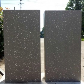 新石韻公司研發(fā)的透光混凝土產(chǎn)品利用光傳導(dǎo)原理,將光學(xué)導(dǎo)光材料和混凝土組合而成。無光源時(shí),產(chǎn)品以清水混凝土紋理作為飾面,而當(dāng)有光源融入時(shí),這種透光混凝土在光的映襯下,能夠透出點(diǎn)點(diǎn)星光,體現(xiàn)別樣美感。目前新石韻透光混凝土通常做成預(yù)制磚或墻板的形式,在光源的作用下,附近的物體可在透光板上顯示出輪廓或者陰影。