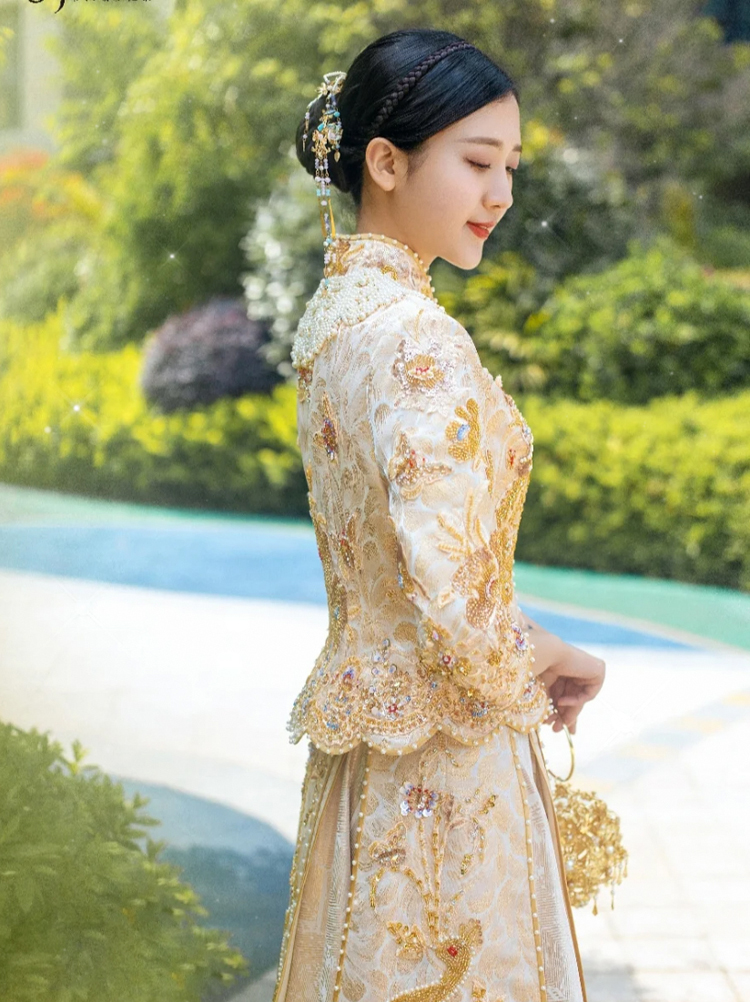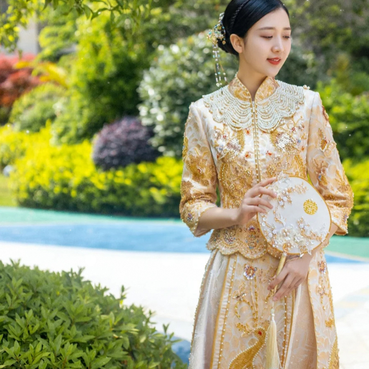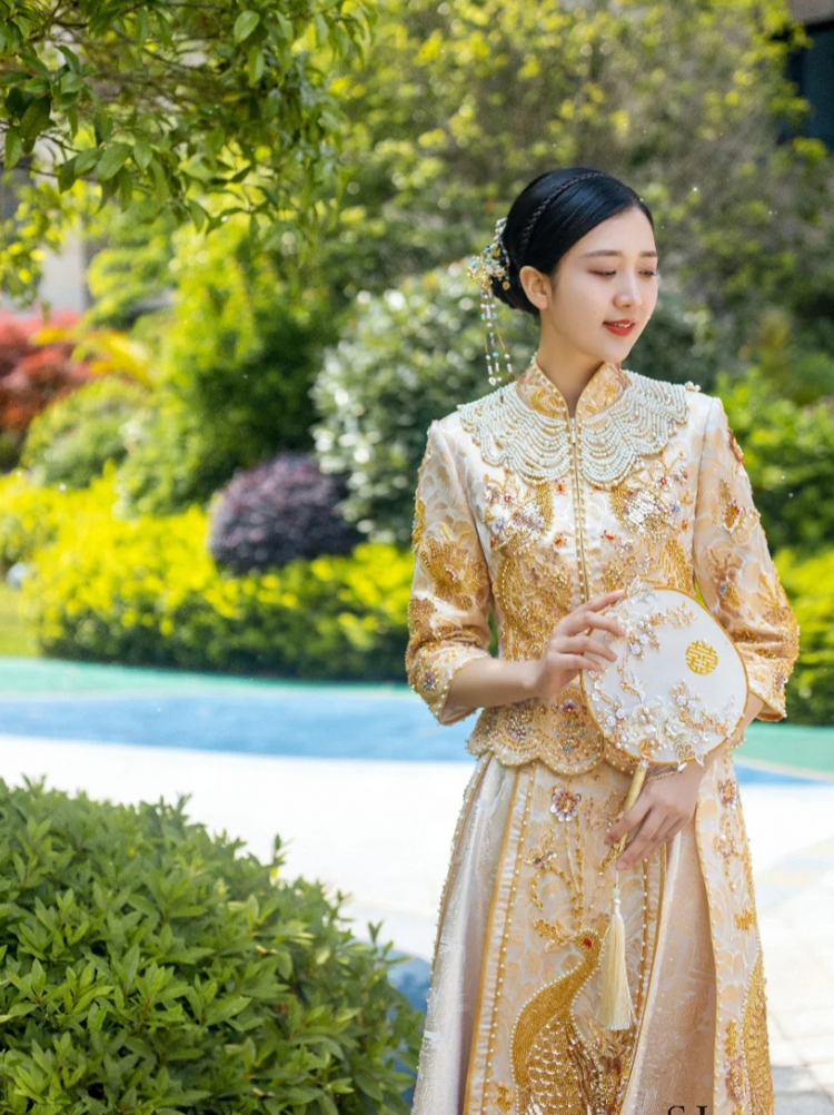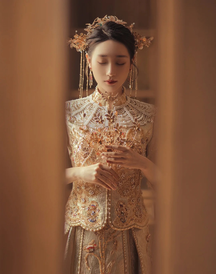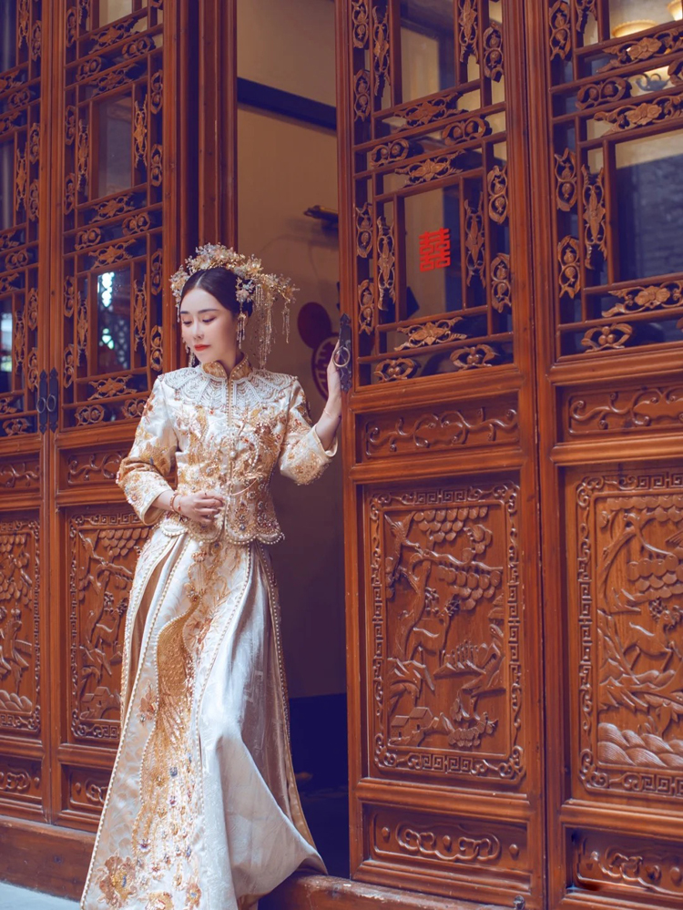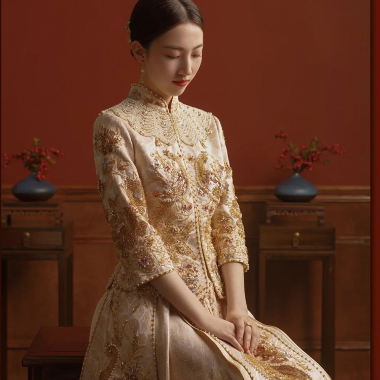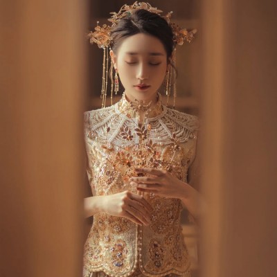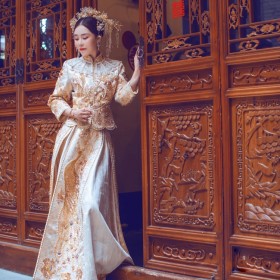 中式的華服是溫軟的綢緞,是藝術(shù)品般精美的刺繡,是精巧的立領(lǐng)和盤扣,是簡潔典雅的直線裁剪。一件定制的中式嫁衣,不但是一件寄托幸福的婚禮服,更是一件有生命力的藝術(shù)品,值得代代珍藏。傳承,是中式嫁衣獨有的魅力。秀禾服,是嫁衣中獨有的中國情懷。