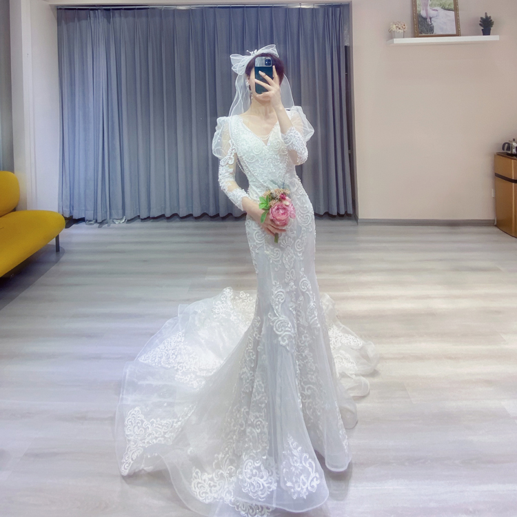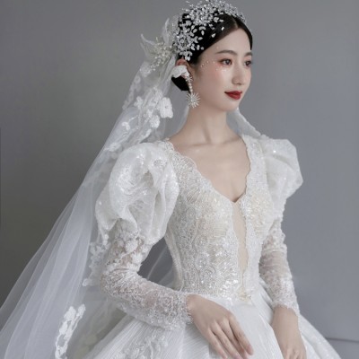 【免費(fèi)搭配】提供頭紗,皇冠,耳環(huán),項(xiàng)鏈,裙撐,高跟鞋及其它搭配。