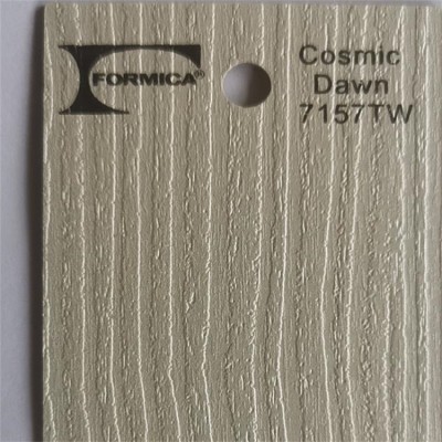 富美家防火板是采用熱固性樹脂含酚醛樹脂含浸裝飾色紙與精選牛皮紙纏繞與滾輪上,再放進(jìn)壓床制造出堅(jiān)硬且不易滲透的板材,從0.7mm-25mm均可制作,并且具備耐火、防潮、耐高溫及不褪色等特性。