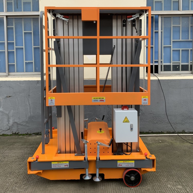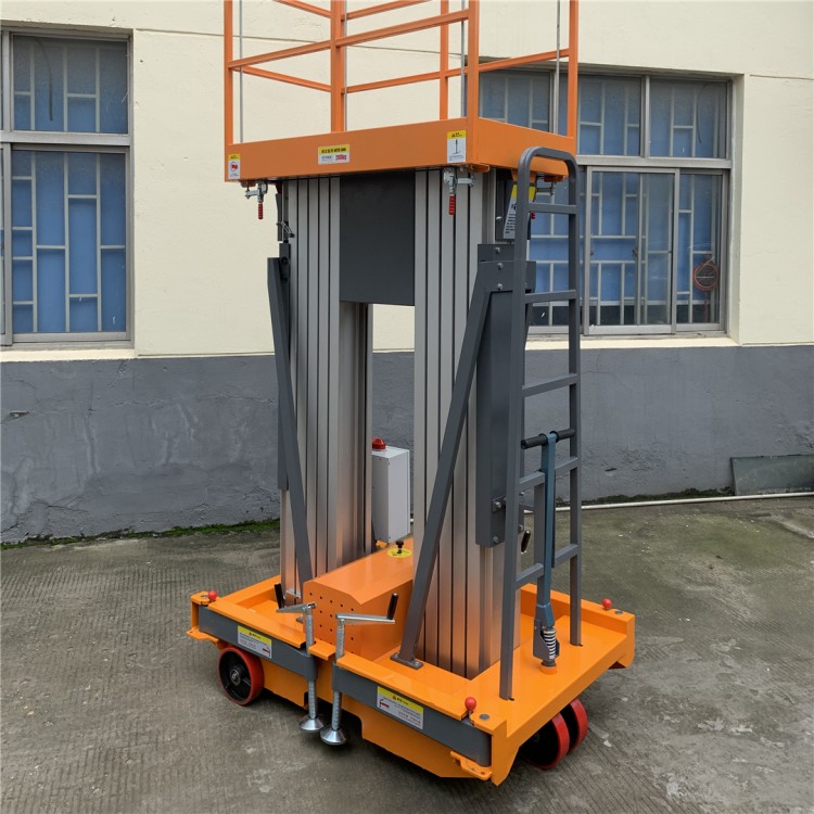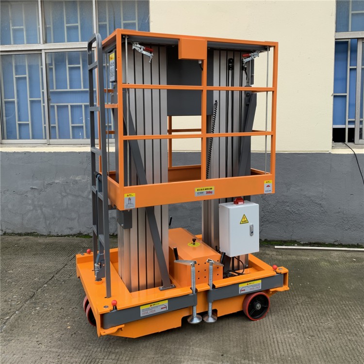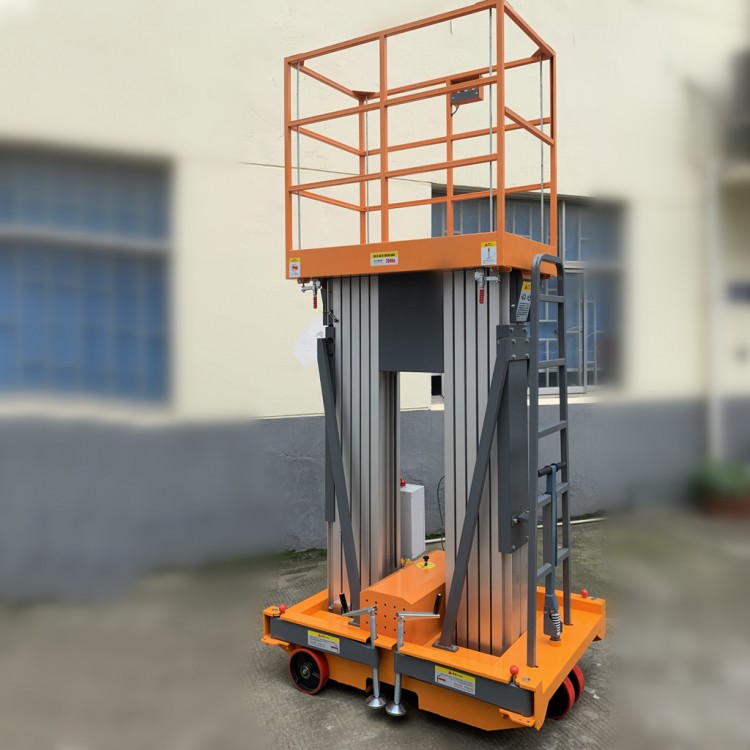 2、 雙柱鋁合金升降機:設計整體采用高強度鋁型材精致而成由于型材強度高,使升降機的擺動小。采用雙桅柱結構,載重量大,工作平臺面積大,穩(wěn)定性好,運轉靈活,推行方便。輕盈的外觀,能在極小的空間內發(fā)揮的舉升能力。該升降機廣泛用于廠房、大廈、賓館、車站、機場等??捎糜陔娏κ┕?、車間維修、管道安裝、高空保潔等的高空作業(yè)。