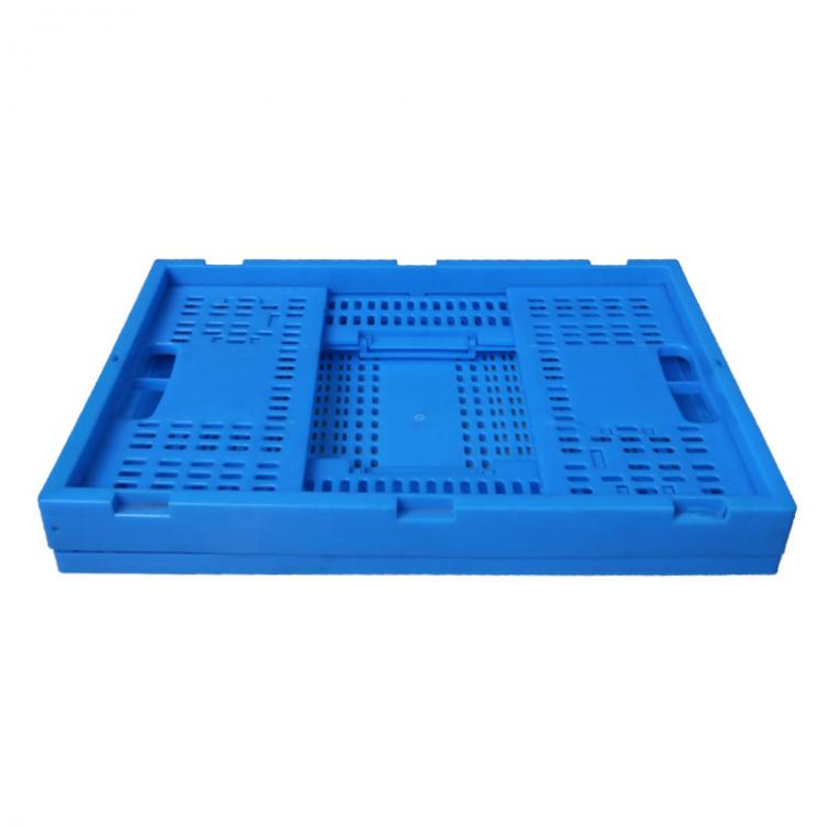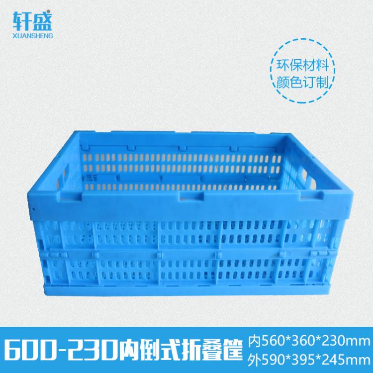 高強(qiáng)度600-280內(nèi)倒式可配蓋折疊筐藍(lán)色生鮮配送蔬菜水果