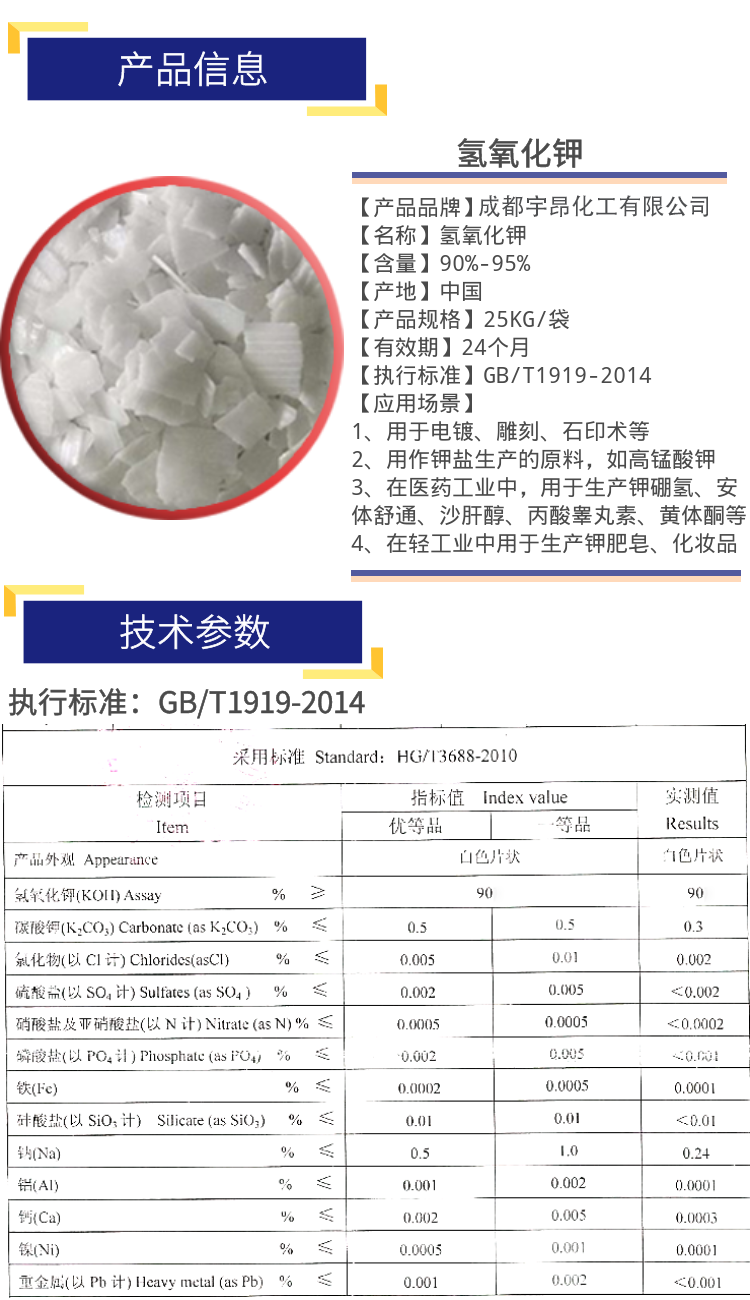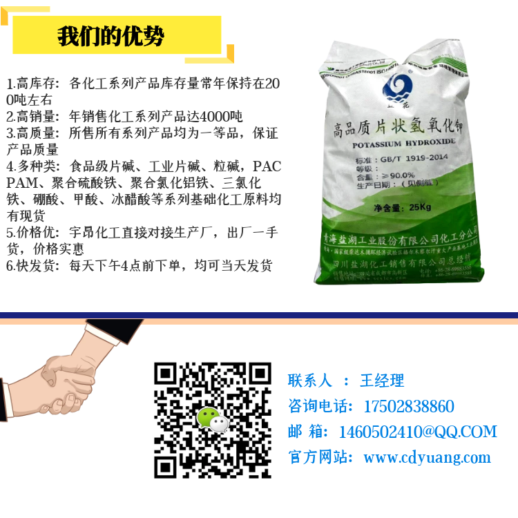 產(chǎn)品名稱:氫氧化鉀 90% 95%高含量 白色片狀 離子膜苛性鉀