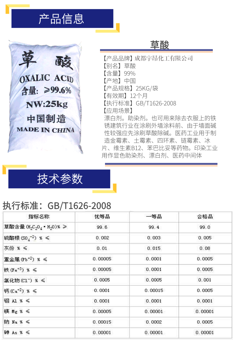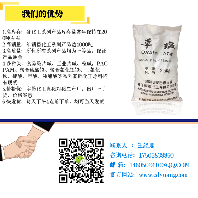 工業(yè)級草酸 污水處理除垢劑 除銹劑 內(nèi)蒙通遼 含量99%乙二酸