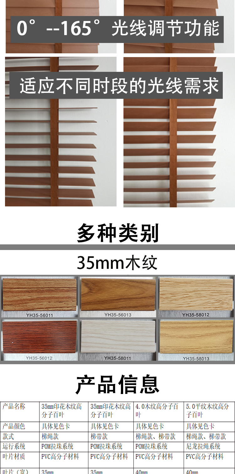 辦公室窗簾 百葉窗簾 成都窗簾廠家 木紋PVC 印花仿木百葉 35mm寬 鋁合金百葉窗 卷簾窗簾