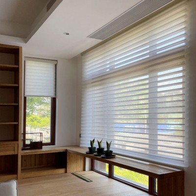 香格里拉簾 Shangri-la Blind 源于美國(guó)COMFERTEX。是一種柔合了電動(dòng)窗簾、窗紗、百葉簾、卷簾于一身的嶄新設(shè)計(jì)。香格里拉簾是保持隱私及控制光線的不錯(cuò)選擇。廣泛用于別墅、寫字樓、咖啡廳、西餐廳、酒店等場(chǎng)所。?