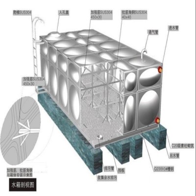 全封閉,有進水、出水、溢流、排污之功能,安裝簡便,您只需將水箱 置于房頂,接上水管即可使用,保養(yǎng)十分方便。不銹鋼水箱廣泛用于高樓公寓、工廠、學校、醫(yī)院、別墅及其它各個領域。