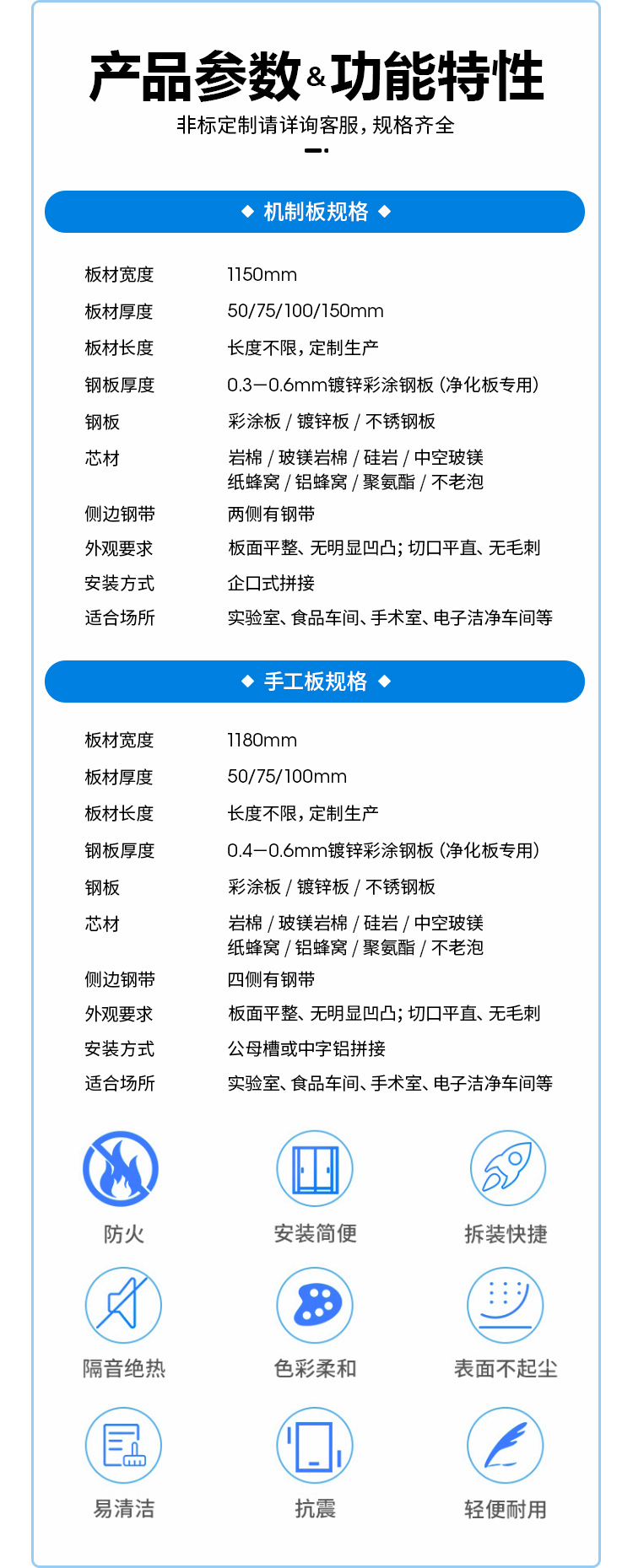 50mm巖棉夾心板 機(jī)制板 手工板 凈化彩鋼夾心板 醫(yī)院實(shí)驗(yàn)室電子廠房食品車間專用隔墻吊頂板