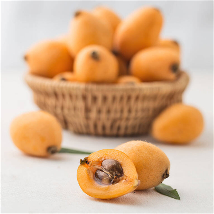 成熟的枇杷果子亦成束掛在樹上,每個果子長3-5厘米,成圓形、橢圓、或長狀“琵琶形”。枇杷表面被有絨毛,未熟時青綠色,較硬實,芳香氣味較濃。成熟后外皮一般為淡黃色,亦有顏色較深,接近橙紅色的。果肉軟而多汁,主要可分為白色及橙色兩種;稱“白沙”(白枇杷)及“紅沙”。當中白沙甜,果型較?。患t沙較酸或頗酸,相對較大。每個枇杷果子內(nèi)有五個子房,當中一至五顆發(fā)育成棕色的種子,人工開發(fā)的無籽品種則無種子。