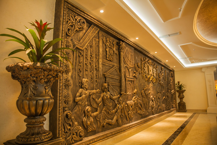 GRC采用噴射預(yù)制的GRC材料具有厚度均勻、密度高、強(qiáng)度大等諸多優(yōu)點(diǎn)。GRC表面根據(jù)不同需求可面飾氟碳漆、多彩漆、真石漆、乳膠漆等外墻涂料以及滿足彩繪等工藝,對涂料有很好的附著性,且對涂料自身的結(jié)構(gòu)穩(wěn)定無任何影響