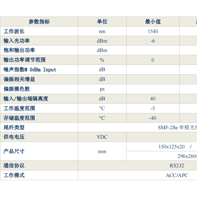 易訊光子生產(chǎn)的光纖放大器是一款高增益、低噪聲的預(yù)放光纖放大器(Pre-EDFA);用于對(duì)微弱光信號(hào)進(jìn)行放大,提高接 收機(jī)靈敏度,延長(zhǎng)信號(hào)的傳輸距離。該系列放大器內(nèi)部采用優(yōu)化的光路結(jié)構(gòu),配合電信級(jí)的980nm泵浦激光器,實(shí)現(xiàn)高性能的小信號(hào)放大輸出?;诜€(wěn)定的高效的內(nèi)部控制系統(tǒng), 結(jié)合高精度的ATC和ACC(APC)控制電路實(shí)現(xiàn)放大器穩(wěn)定、可靠運(yùn)行。產(chǎn)品全部狀態(tài)參量與配置信息可由上位機(jī)進(jìn)行遠(yuǎn)程監(jiān)控與配置。該系列光纖放大器有多種封裝形式,滿足不同應(yīng)用要求。并且有高功率,脈沖,1570nm,以及拉曼等放大器。詳細(xì)datesheet請(qǐng)聯(lián)系易訊光子產(chǎn)品售前部門。