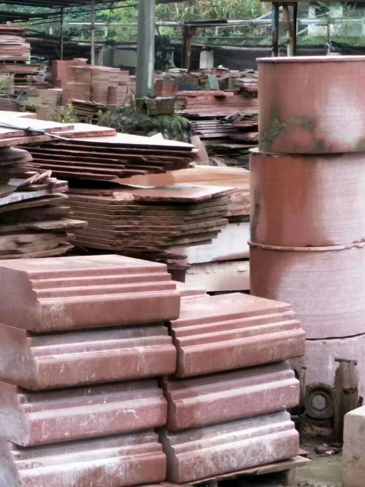 中國紅是大理石,天然大理石是地殼中原有的巖石經(jīng)過地殼內(nèi)高溫高壓作用形成的變質(zhì)巖。屬于中硬石材,主要由方解石、石灰石、石和白云石組成。其主要成分以碳酸鈣為主,約占50%以上。其他還有碳酸鎂、氧化鈣、氧化錳及二氧化硅等。由于大理石一般都含有雜質(zhì),而且碳酸鈣在大氣中受二氧化碳、碳化物、水氣的作用,也容易風(fēng)化和溶蝕,而使表面很快失去光澤。所以少數(shù)的,如漢白玉、艾葉青等質(zhì)純、雜質(zhì)少的比較穩(wěn)定耐久的品種可用于室外,其他品種不宜用于室外,一般只用于室內(nèi)裝飾面。四川紅石材以色澤鮮紅、紅里透亮、材質(zhì)堅(jiān)硬、密度高等獨(dú)有特性,比曾風(fēng)靡全球的“印度紅”還鮮艷亮麗,被石材專家命名為“中國紅”而風(fēng)靡一時(shí),享譽(yù)世界。又被譽(yù)為“天下第 一紅”花崗石,是室內(nèi)外裝飾和景區(qū)景點(diǎn)雕塑的用料。成為各地雕刻家理想的雕塑用材。四川紅石材類巖石的礦物成分主要為石英、鉀長石、斜長石,含量占礦物總量的85%左右。次要礦物有黑云母、角閃石和少量輝石,含量少于15%。滎經(jīng)縣輝煌石材廠創(chuàng)建于2005年,位于有人口小縣,資源大縣之稱的滎經(jīng)縣附城鄉(xiāng)開發(fā)區(qū),是一家集礦山、加工、銷售一條龍的民營企業(yè)。本廠擁有龍門大切,磨機(jī),磨邊機(jī),圓弧機(jī),仿型機(jī)等數(shù)十臺(tái)石材加工生產(chǎn)設(shè)備。
