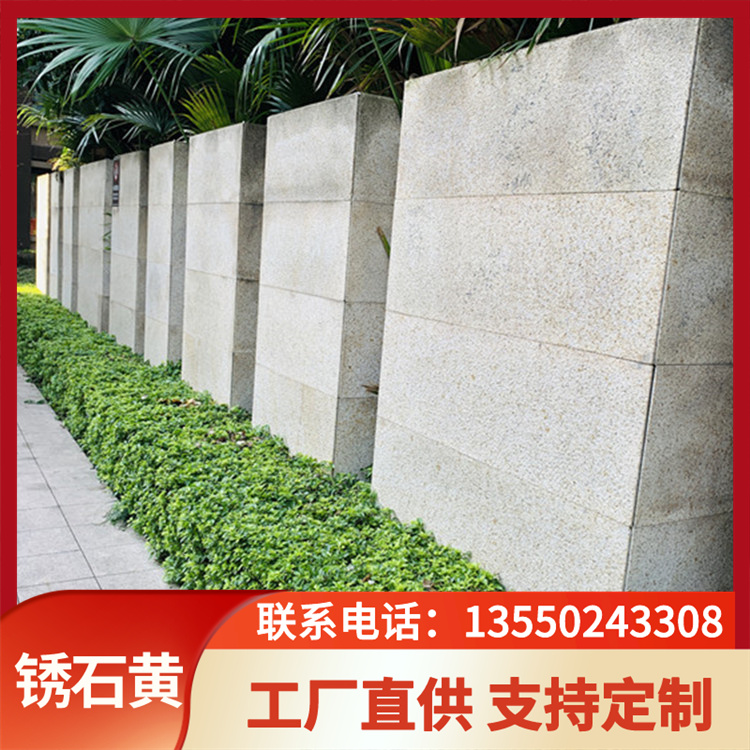 銹石黃花崗巖 鐵銹黃荔枝面燒面淺黃石材 黃銹石大理石