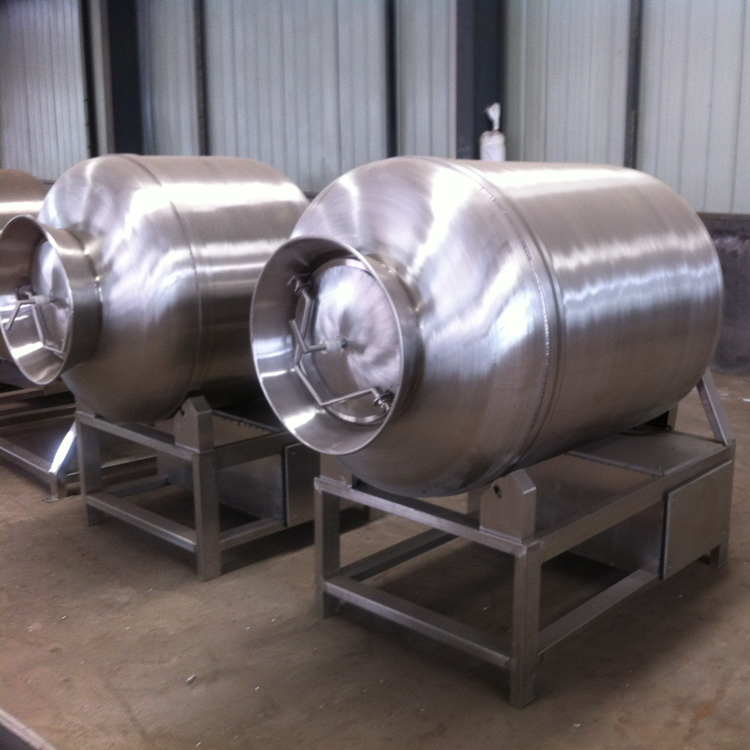 真空滾揉機(jī)適用已經(jīng)注射及嫩化的肉塊進(jìn)入滾揉機(jī)后,經(jīng)設(shè)備筒體慢速柔和的翻滾,使肉塊得到均勻的擠壓、攪拌,加速肉塊中鹽溶性蛋白的釋放及同時(shí)能使添加料(淀粉等)與肉體蛋白質(zhì)互為溶合,以達(dá)到肉質(zhì)變嫩、增加肉塊的保水性、口感好、顏色及切片紋理美觀、出品率高的目的。
