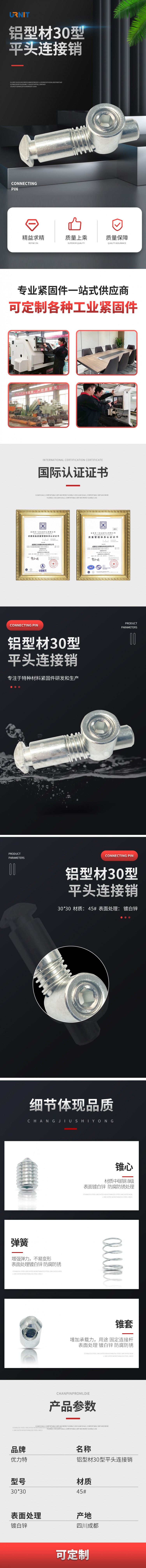 產品名稱:四川成都 鋁型材30型平頭連接銷 廠家直銷可定制