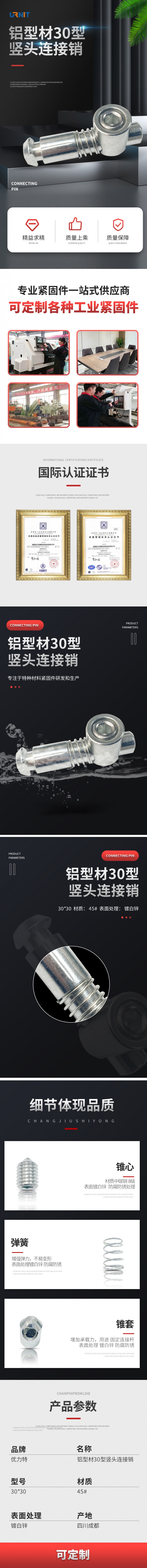 產(chǎn)品名稱:四川成都 鋁型材30型豎頭連接銷 廠家直銷可定制