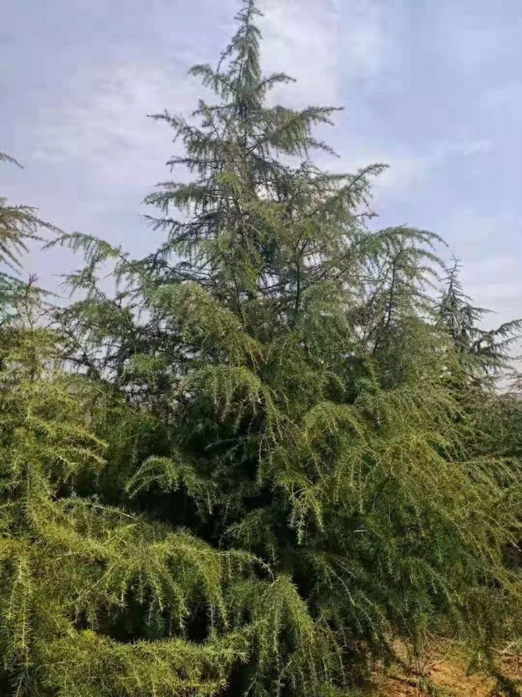 ,樹冠尖塔形,大枝平展,小枝略下垂。葉針形,長8-60厘米,質(zhì)硬,灰綠色或銀灰色,在長枝上散生,短枝上簇生。10-11月開花。球果翌年成熟,橢圓狀卵形,熟時赤褐色。產(chǎn)于亞洲西部、喜馬拉雅山西部和非洲,