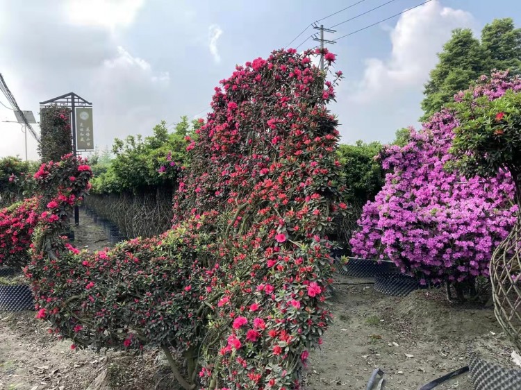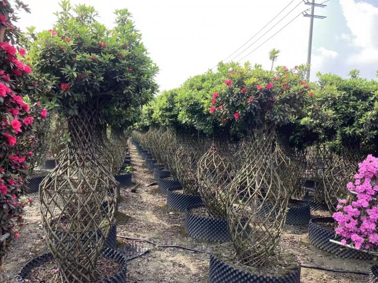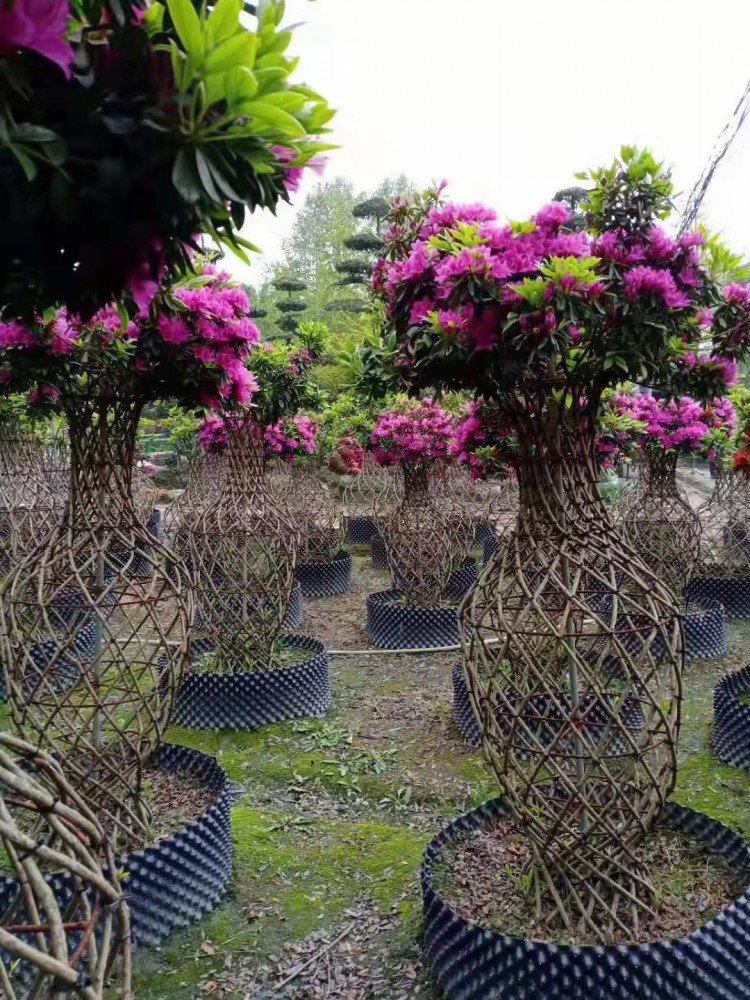 四川苗木基地 批發(fā)杜鵑花花瓶 杜鵑花孔雀造型 映山紅編織造型 大型苗木基地 價(jià)優(yōu)貨好