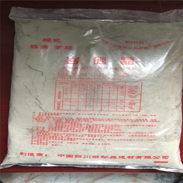 2、早強作用:摻巖砂晶配制的砂漿,它具有與水泥親合及強化作用,通過塑化過程,在使用后5-6小時達到一定強度,后期強度更佳。