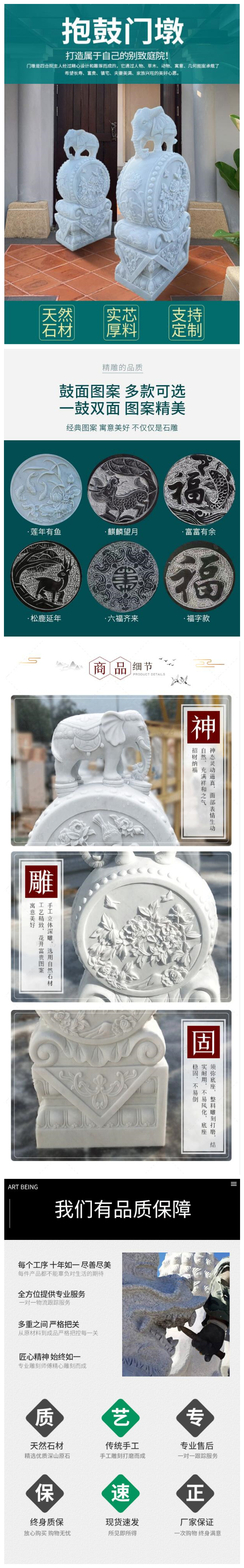 四川漢白玉抱鼓石門墩 一對(duì) 天然石材 均可定做加工