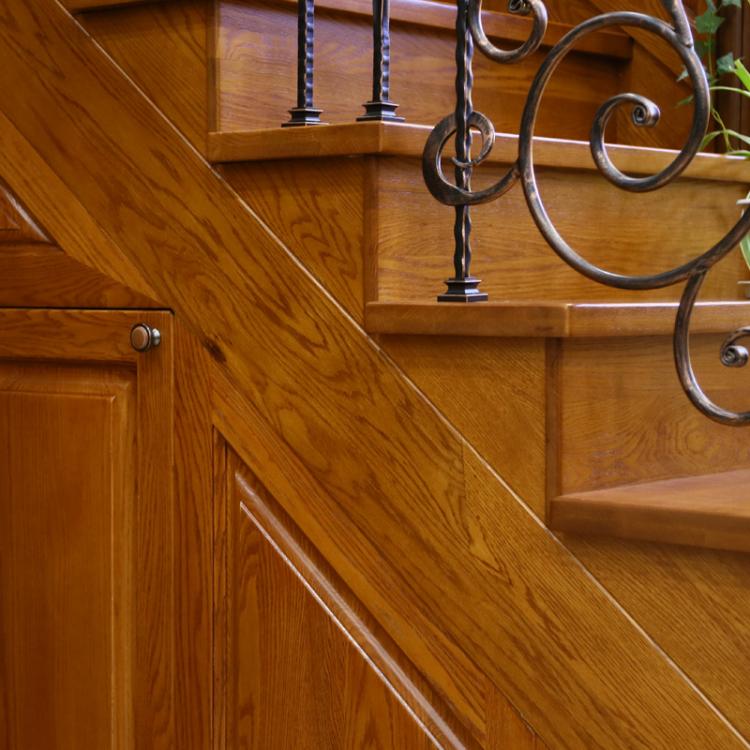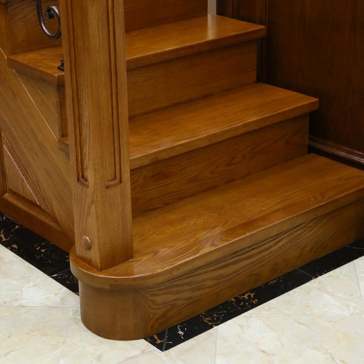 歐洲櫸木弧形整體樓梯 家用室內實木樓梯扶手定制 實木樓梯立柱