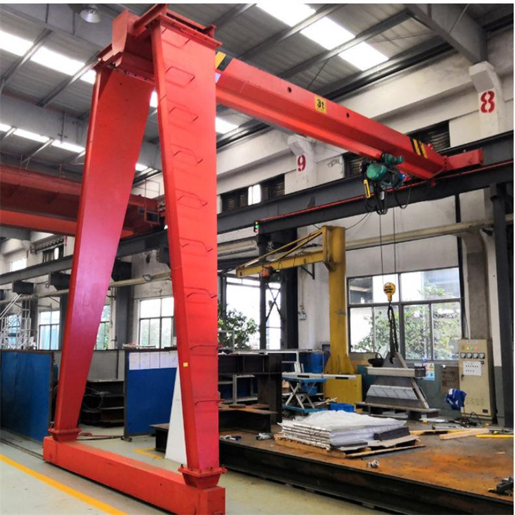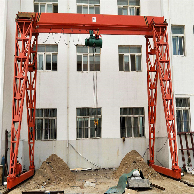 電動(dòng)葫蘆半門式起重機(jī)是有軌運(yùn)行的中小型起重設(shè)備,主要由門架(主梁、支腿、下橫梁等)、起升機(jī)構(gòu)、運(yùn)行機(jī)構(gòu)及電控部分組成,以電動(dòng)葫蘆作為起升機(jī)構(gòu),工作時(shí)沿主梁工字鋼下翼緣運(yùn)行。門架一側(cè)設(shè)有支腿,沿地面軌道上運(yùn)行,另一側(cè)無(wú)支腿,沿廠房上部軌道運(yùn)行,其余結(jié)構(gòu)和配置與MH型電動(dòng)葫蘆門式起重機(jī)一致。