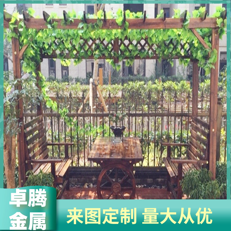 PS:傳統(tǒng)的葡萄架是竹架子、木棚子,也稱防腐木架。防腐木架在造園規(guī)劃中往往具有亭、廊的作用.但防腐木工藝雜亂,人工費(fèi)用高,售后每隔二三年都需求刷漆,一起油漆對(duì)人體存在危害:甲醛等。