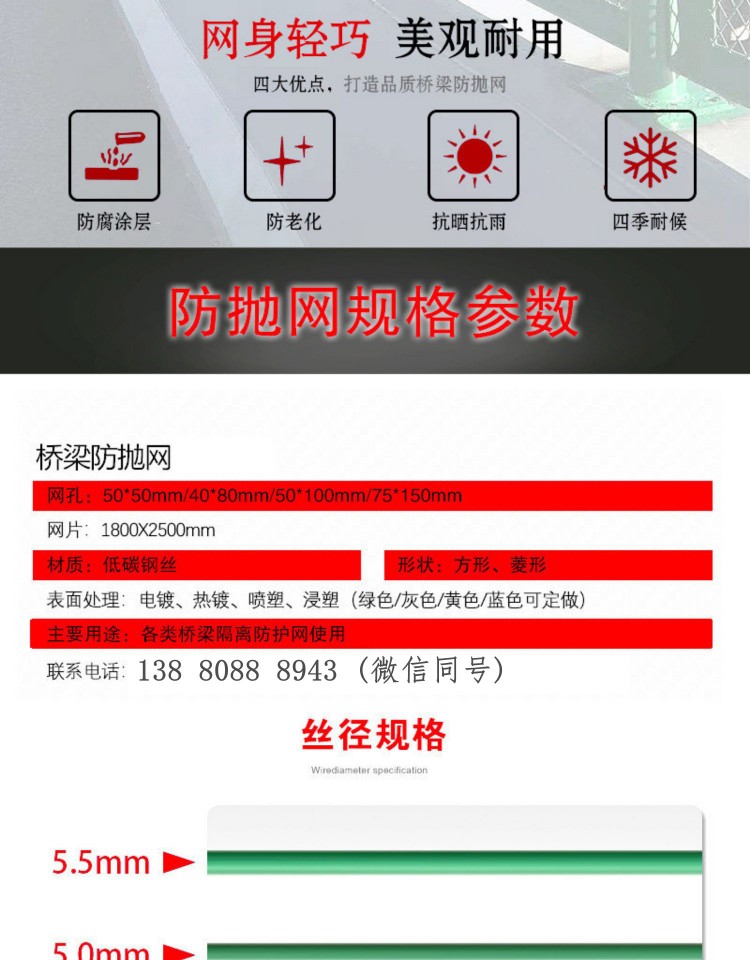 橋梁防拋網(wǎng) 高架橋防拋物網(wǎng) 人行天橋防止落物網(wǎng) 防拋網(wǎng)廠家