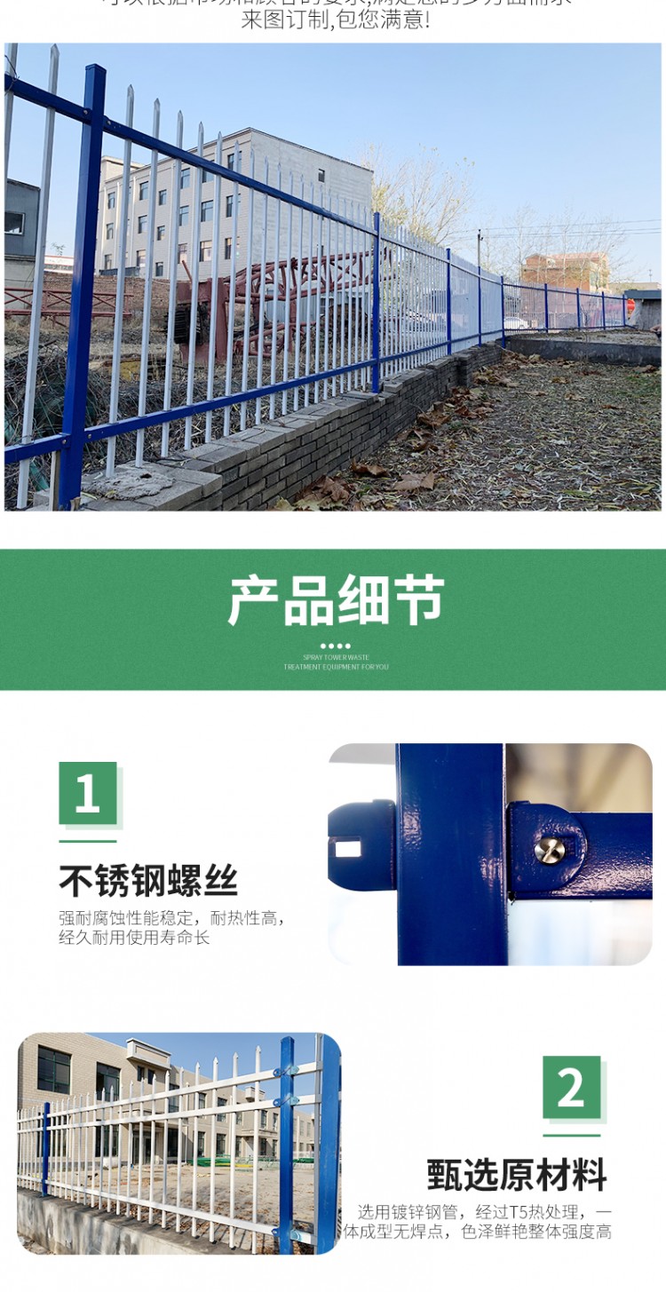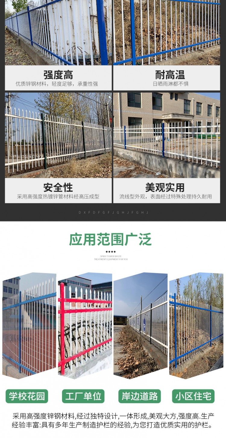 圍墻欄桿按需定制 小區(qū)別墅院墻圍欄 廠區(qū)周界隔離網(wǎng) 藍(lán)白黑烤漆鋅鋼護(hù)欄