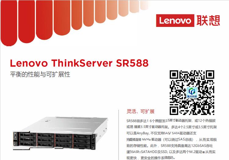 Lenovo ThinkServer SR588 旨在為需要雙路處理器和大容量內存的機架環(huán)境設計,可以滿足大中型企業(yè)對于云和大數據環(huán)境的需求。SR588 是一款平衡的中端機架服務器,也非常適合小規(guī)模虛擬化、協作和生產力應用程序,以及緩存和日志記錄。