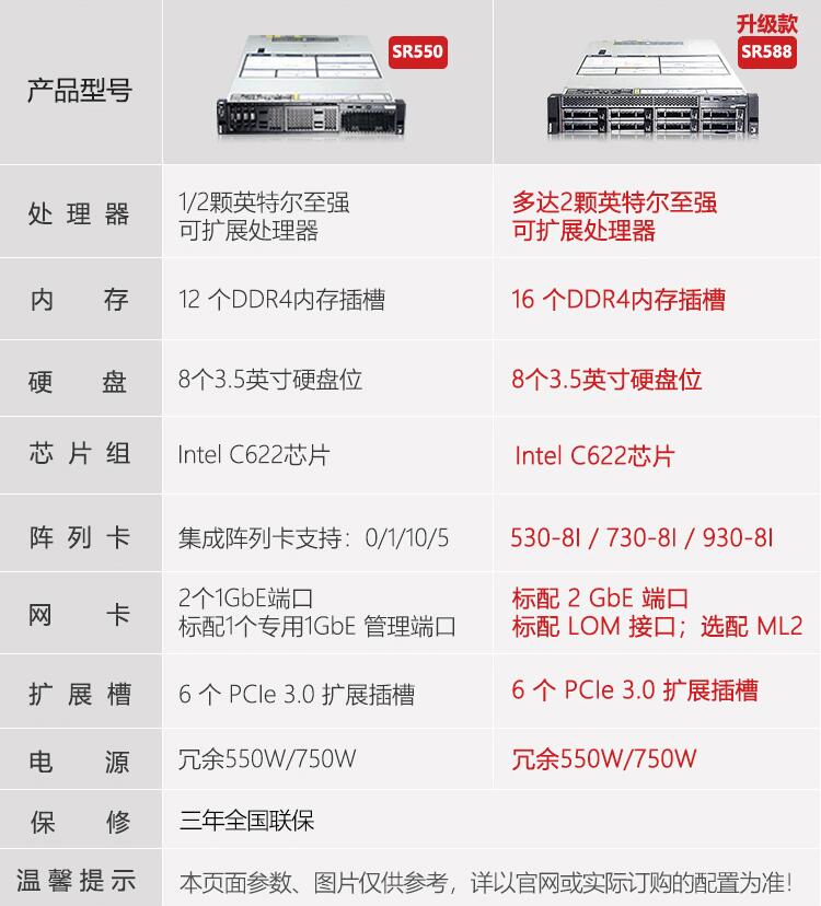 聯想服務器ThinkServer SR588 2U雙路機架式服務器主機(SR550升級款) 定制改配 2顆銀牌4210R【2.4G 20核40線程】 32G內存/4x600G 10K/550W單電 |